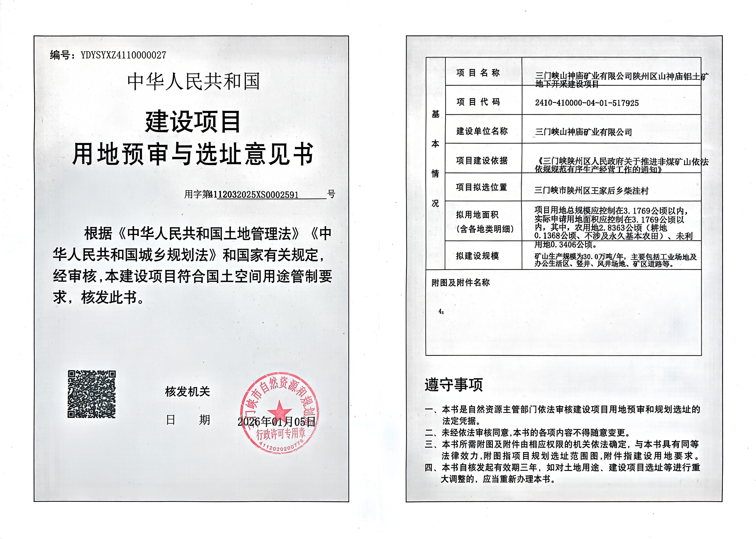 三门峡山神庙矿业有限公司陕州区山神庙铝土矿地下开采项目